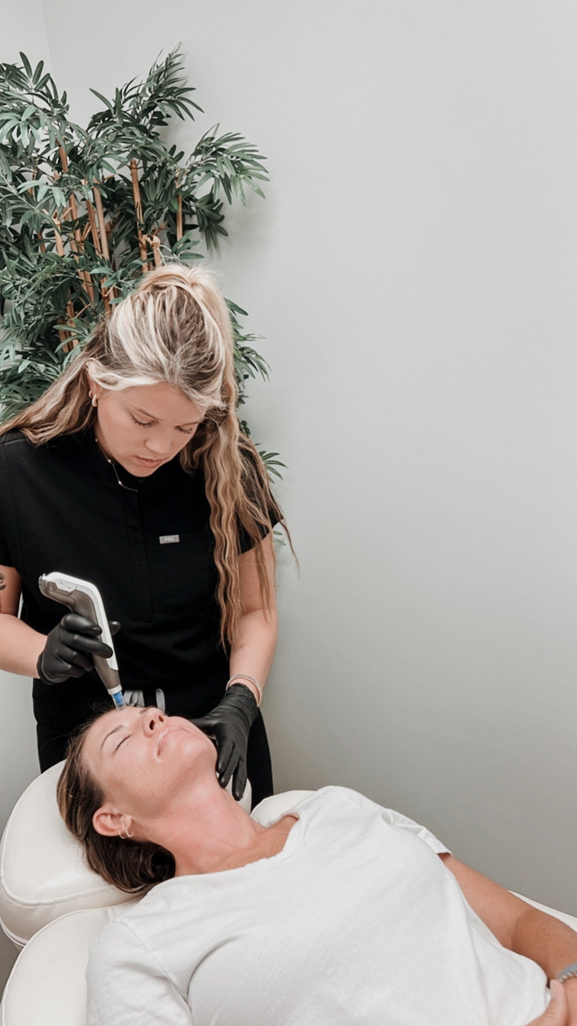 At Solé Med Spa we have a revolutionary approach to microneedling. All microneedling sessions include a custom infusion that is blended based on skin care concerns prior to beginning the procedure. This allows every session to be completely unique to our individual clients' skin care concerns. This custom infusion is then applied to the skin and infused with an FDA-cleared advanced microneedling device. A superficial chemical peel is then applied to the treated areas. An after-care kit that includes a soothing mask can be added to the treatment and used at home. We suggest a series of treatments for optimum results.